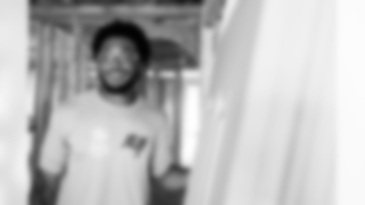 TAMPA, FL - November 14, 2023 - Outside Linebacker Jose Ramirez #33 of the Tampa Bay Buccaneers during a Habitat for Humanity build. Photo By Kyle Zedaker/Tampa Bay Buccaneers