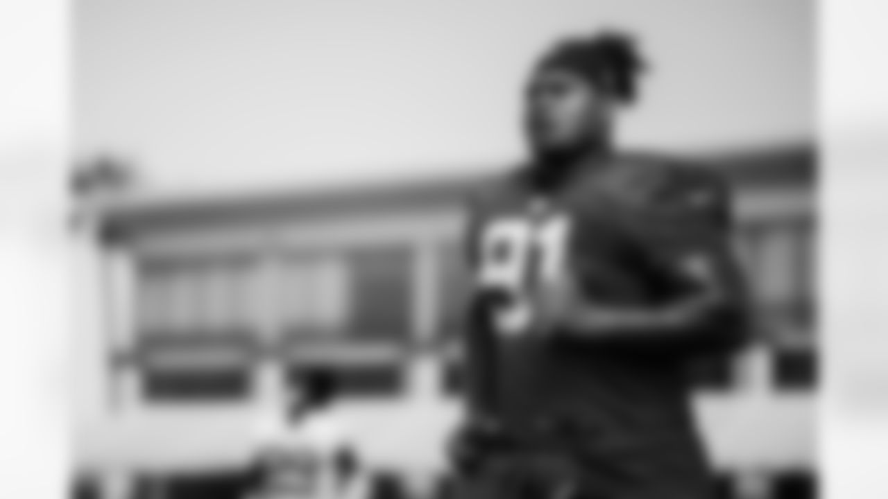 TAMPA, FL - October 05, 2022 - Defensive Lineman Logan Hall #90 of the Tampa Bay Buccaneers during practice at AdventHealth Training Center. Photo By Tori Richman/Tampa Bay Buccaneers