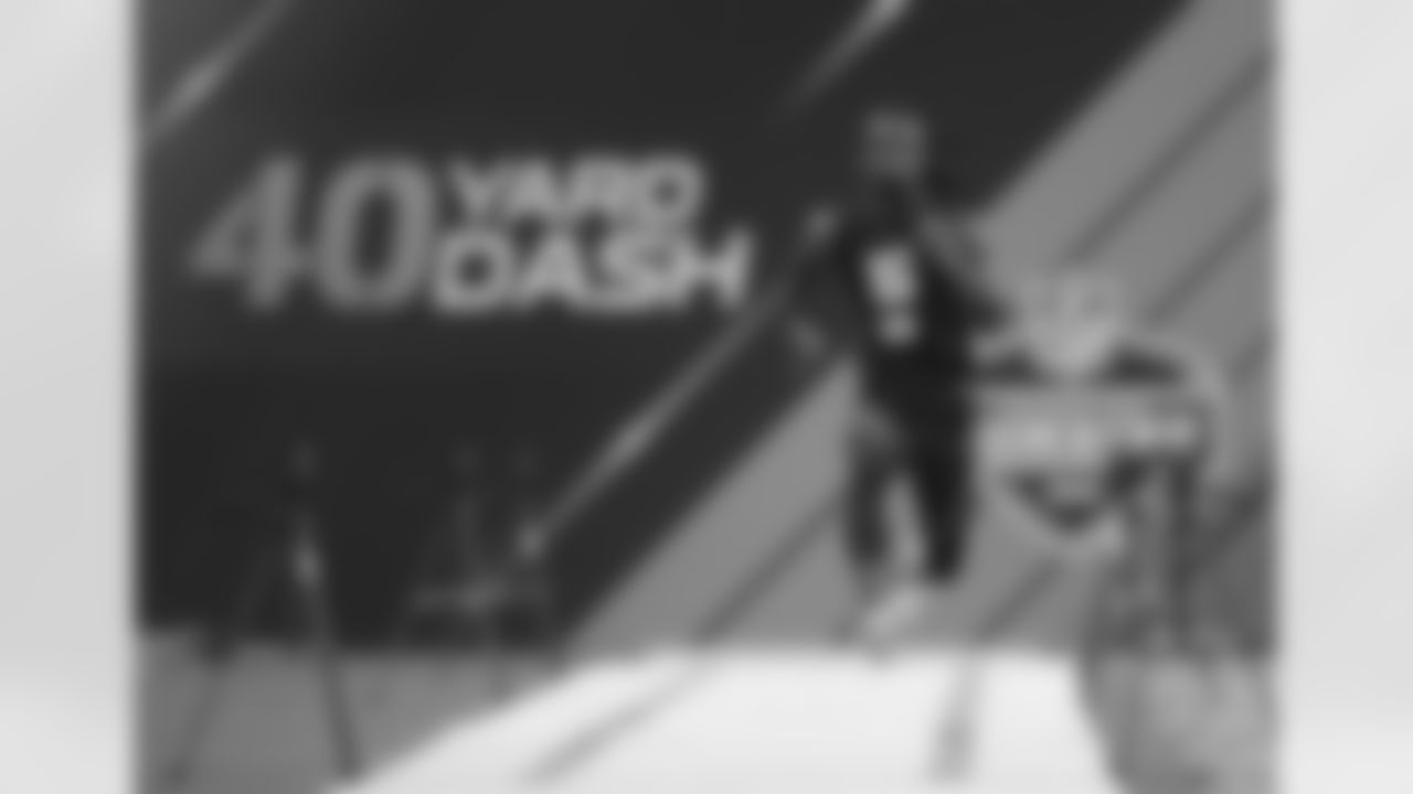 Defensive backs participate in drills during the 2018 NFL Scouting Combine in Indianapolis. Photos by AP Images.