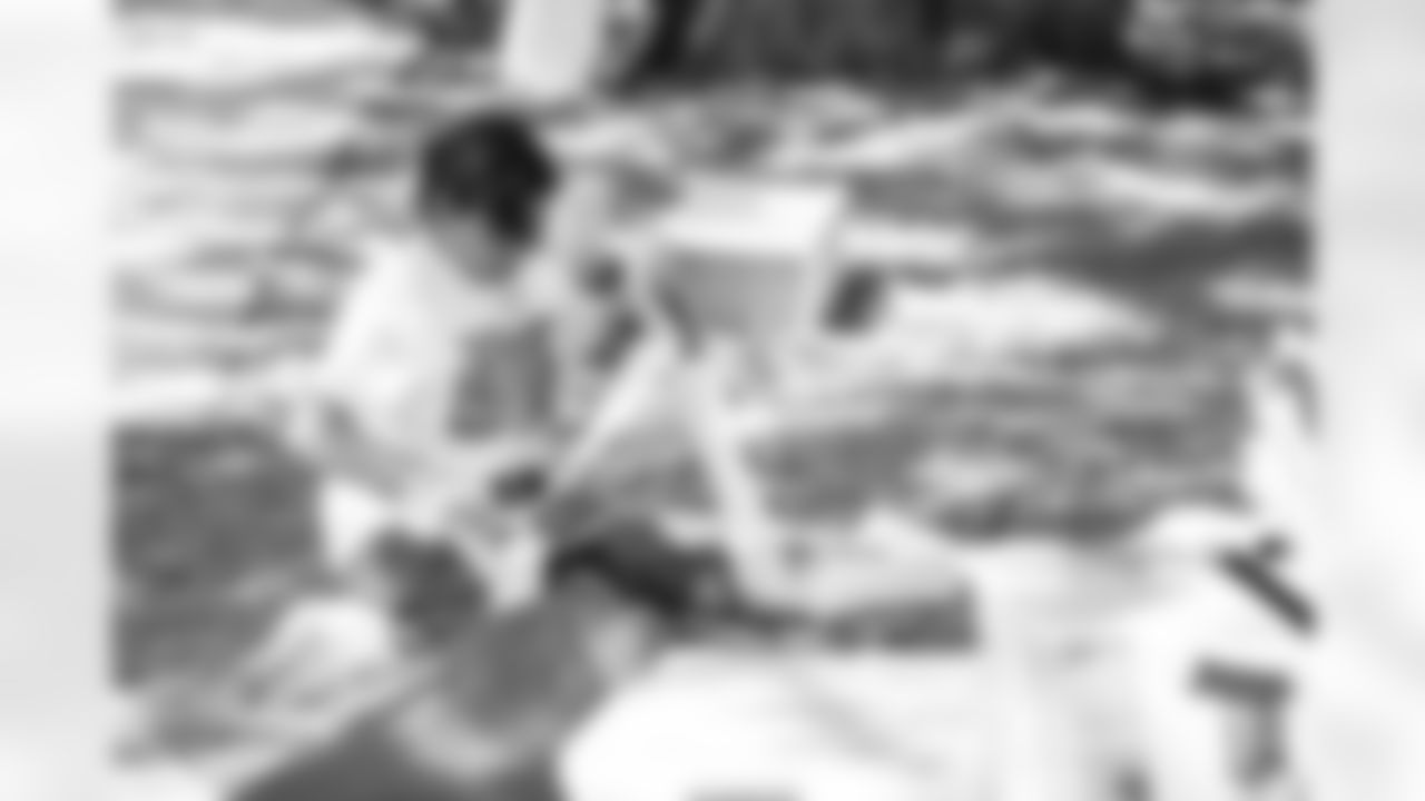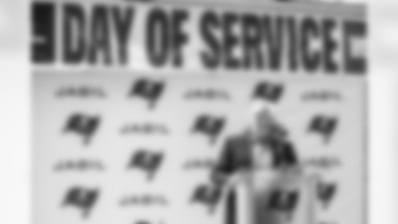 CLEARWATER, FL - May 21, 2021 - Casey Phillips speaks during the 2021 Day of Service at Boys & Girls Club Wood Valley. Photo By Kyle Zedaker/Tampa Bay Buccaneers