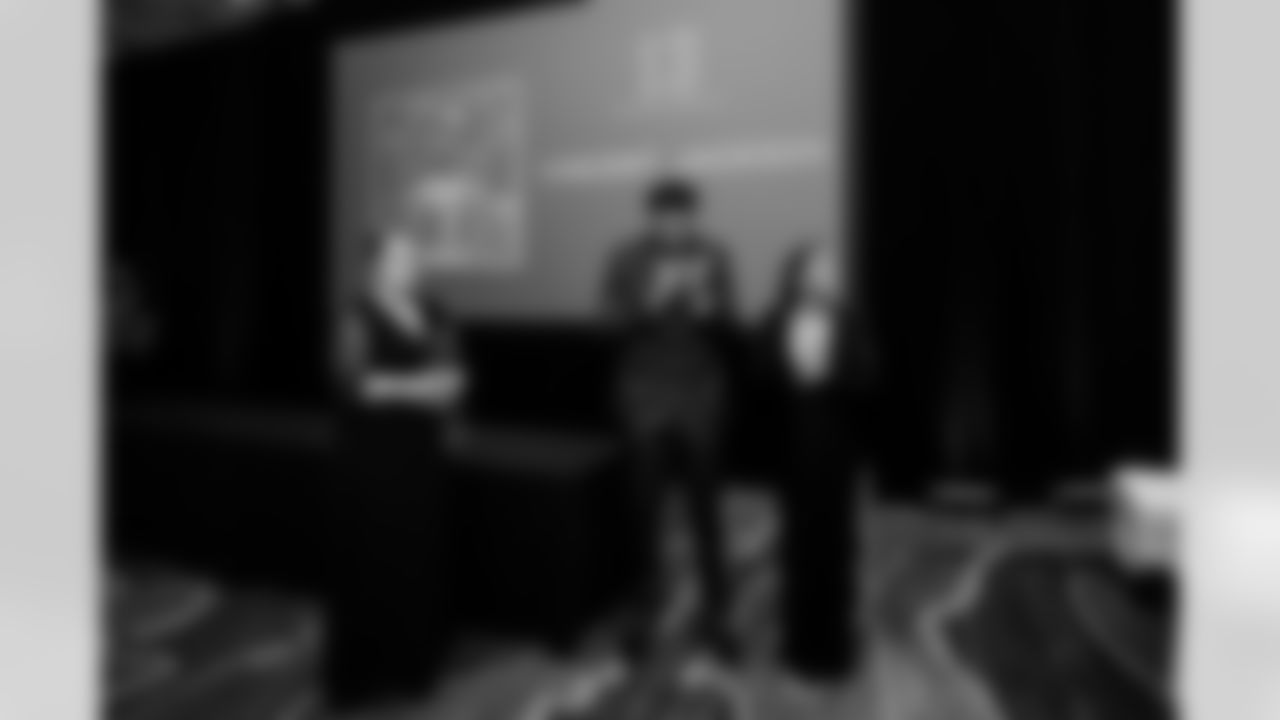 TAMPA, FL - June 11, 2022 - Wide Receiver Mike Evans #13 of the Tampa Bay Buccaneers and Ashli Evans recognize Defensive Lineman William Gholston #92 of the Tampa Bay Buccaneers during Mike Evans Family Foundation Annual Gala at the Marriott Water Street. Photo By Tori Richman/Tampa Bay Buccaneers