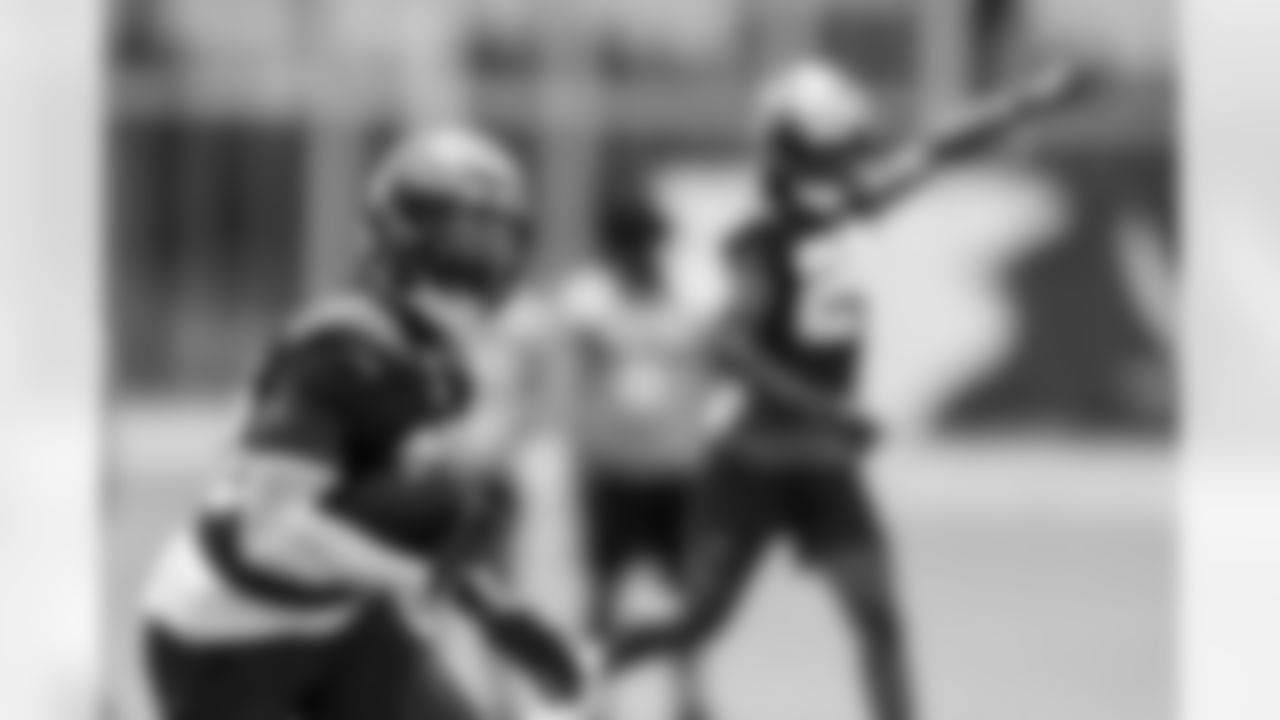 TAMPA, FL - May 10, 2024 - Cornerback Josh Valentine-Turner #26 and Cornerback Chris McDonald #36 of the Tampa Bay Buccaneers during 2024 Rookie Mini Camp at AdventHealth Training Center. Photo By Tori Richman/Tampa Bay Buccaneers