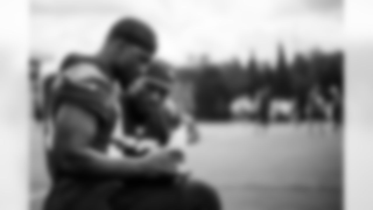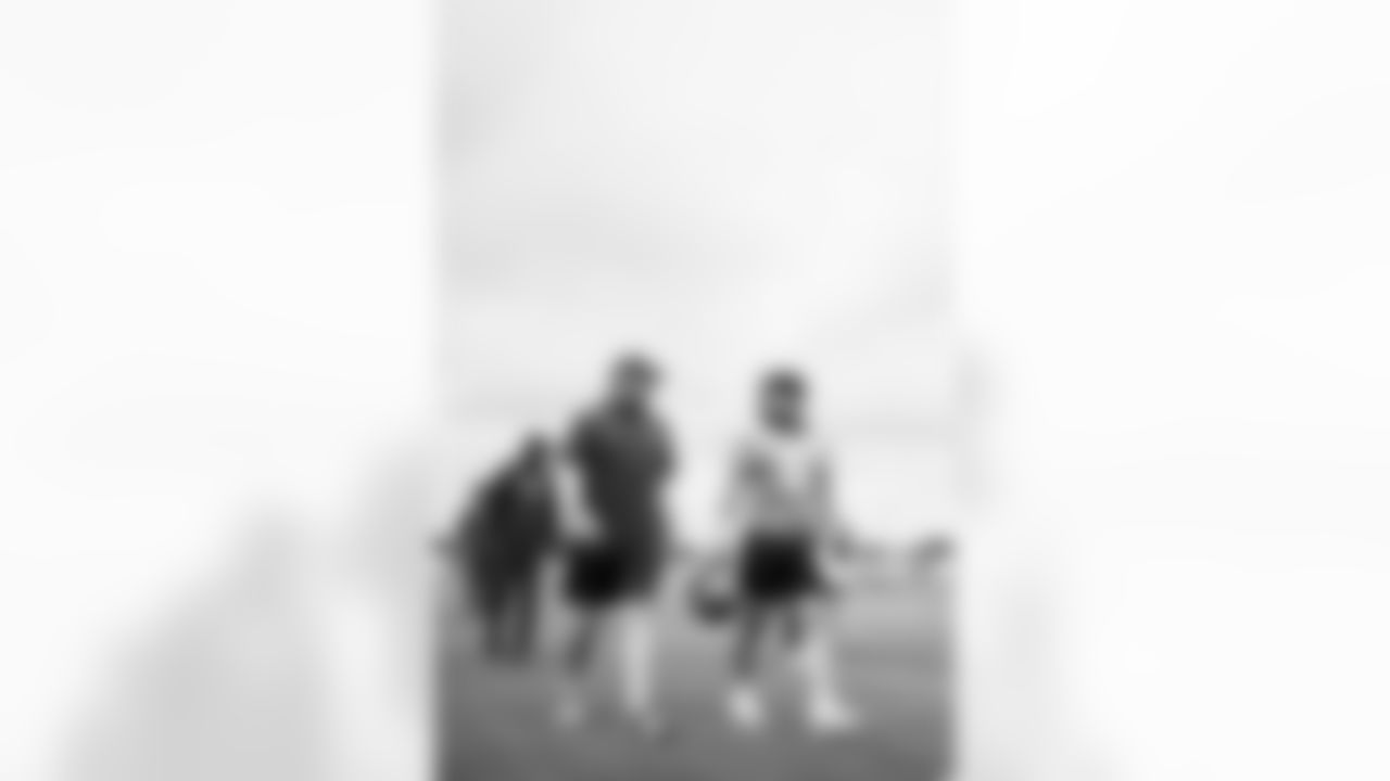 TAMPA, FL - June 11, 2024 - Defensive Tackle Vita Vea #50 and Defensive Quality Control Coach Joey Fitzgerald of the Tampa Bay Buccaneers during 2024 Minicamp at AdventHealth Training Center. Photo By Tori Richman/Tampa Bay Buccaneers