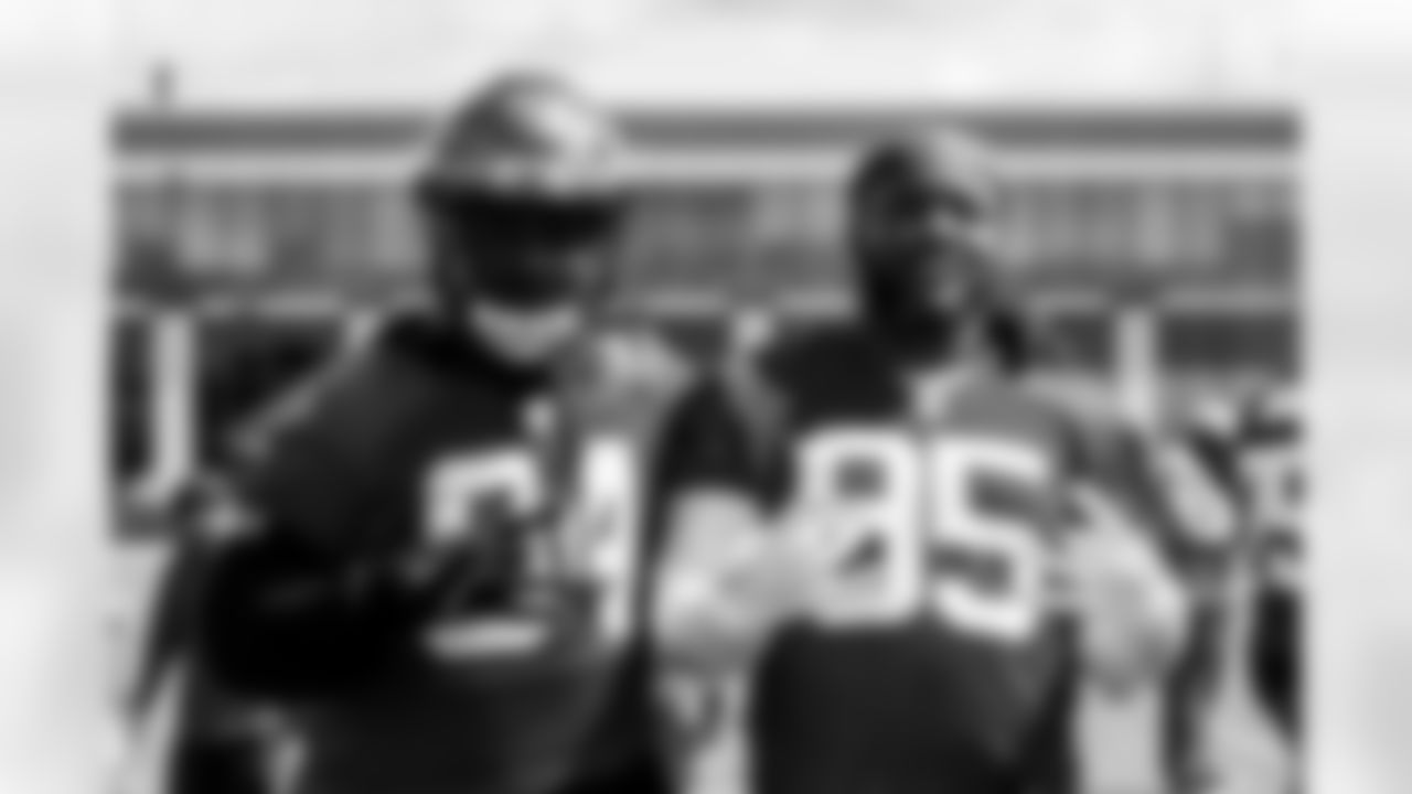 TAMPA, FL - June 11, 2024 - Inside Linebacker Lavonte David #54 and Inside Linebacker K.J. Britt #52 of the Tampa Bay Buccaneers during 2024 Minicamp at AdventHealth Training Center. Photo By Tori Richman/Tampa Bay Buccaneers