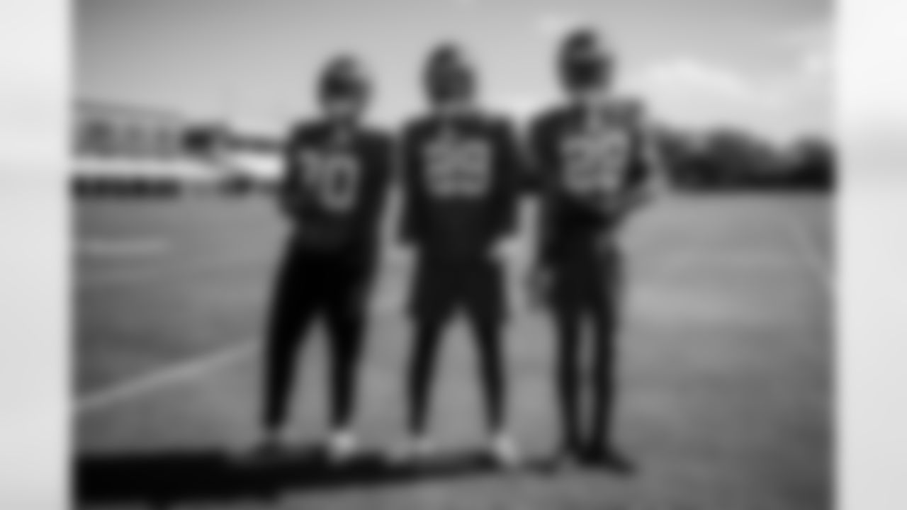 TAMPA, FL - January 13, 2021 - Cornerback Dee Delaney #30, Cornerback Pierre Desir #29, and Cornerback Rashard Robinson #28 of the Tampa Bay Buccaneers during practice at AdventHealth Training Center. Photo By Kyle Zedaker/Tampa Bay Buccaneers
