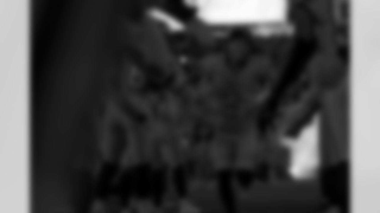 TAMPA, FL - October 21, 2024 - The Tampa Bay Buccaneers offensive line before the Monday Night Football game between the Baltimore Ravens and Tampa Bay Buccaneers. The Bucs lost the game 31-41. Photo By Doug DeFelice/Tampa Bay Buccaneers