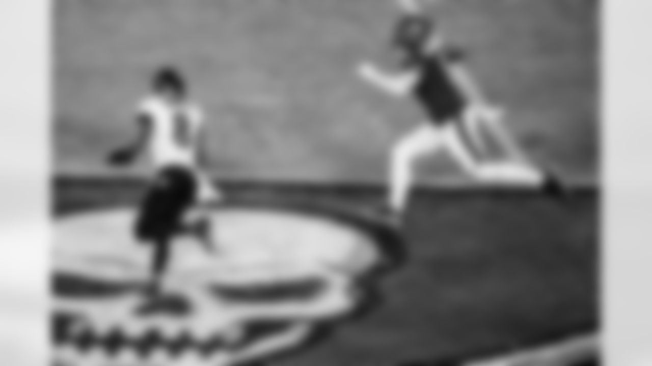 TAMPA, FL - October 21, 2024 - Running Back Rachaad White #1 of the Tampa Bay Buccaneers during the Monday Night Football game between the Baltimore Ravens and Tampa Bay Buccaneers. The Bucs lost the game, 41-31. Photo By Tori Richman/Tampa Bay Buccaneers