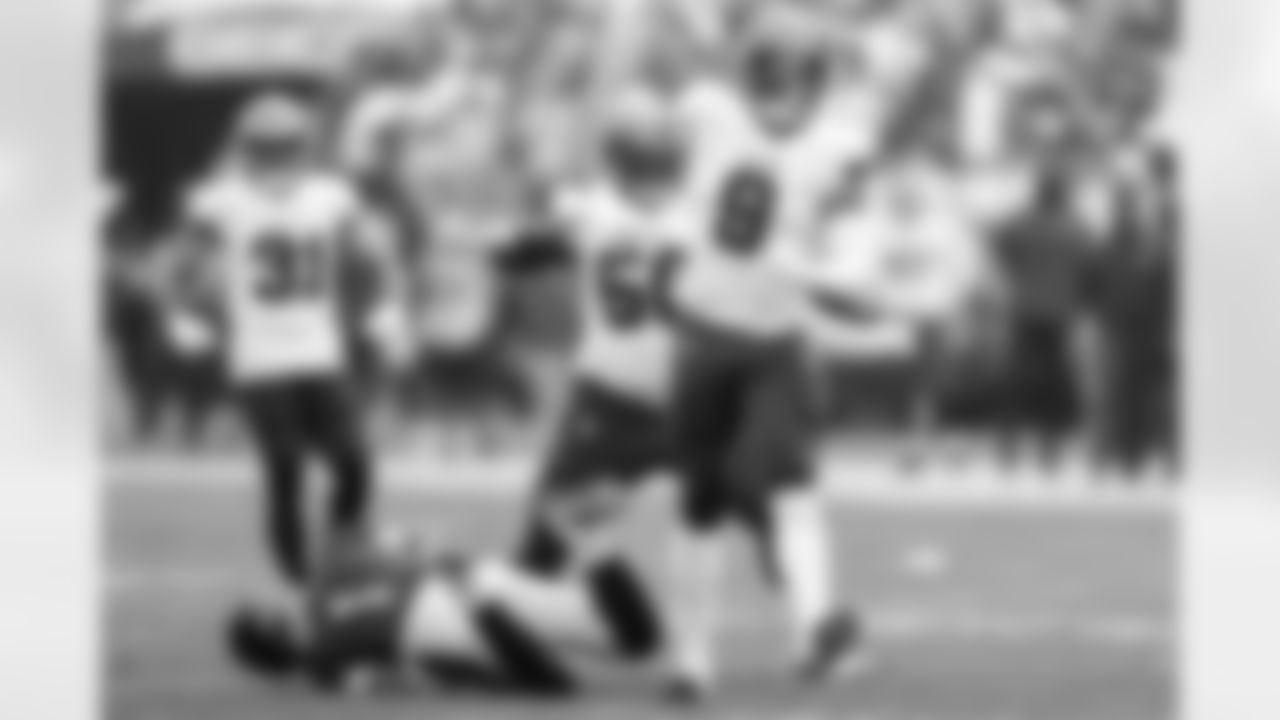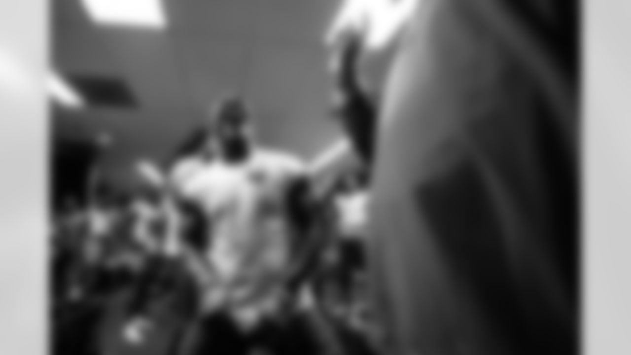 PHILADELPHIA, PA - October 14, 2021 - The Tampa Bay Buccaneers defense celebrates during the game between the Tampa Bay Buccaneers and Philadelphia Eagles at Lincoln Financial Field. The Buccaneers won the game, 28-22. Photo By Kyle Zedaker/Tampa Bay Buccaneers