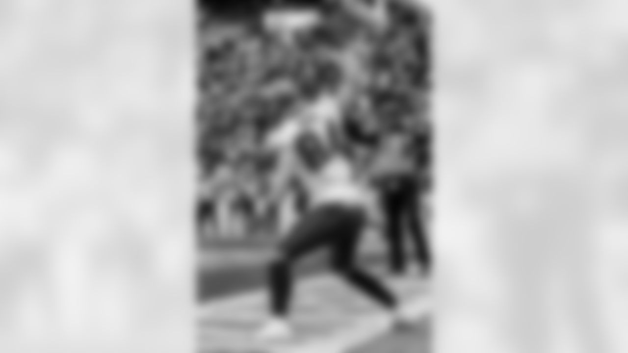 ATLANTA, GA - December 05, 2021 - Running Back Leonard Fournette #7 of the Tampa Bay Buccaneers catches a touchdown during the game between the Tampa Bay Buccaneers and Atlanta Falcons at Mercedes-Benz Stadium The Buccaneers won the game, 30-17. Photo By Kyle Zedaker/Tampa Bay Buccaneers