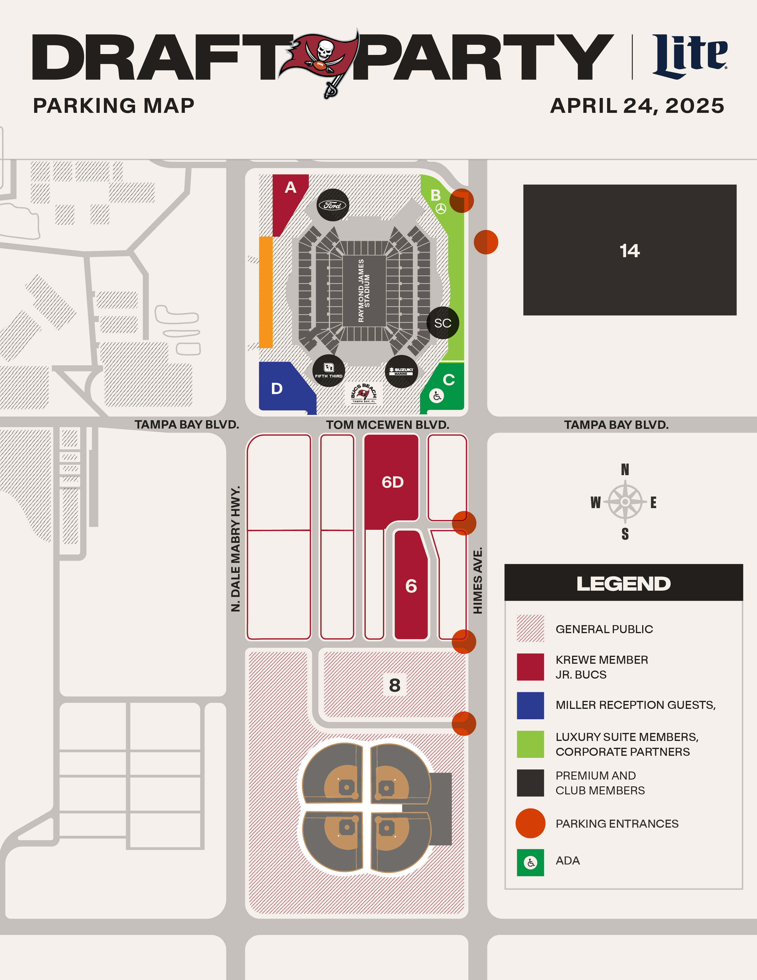 JOIN US ON THE FIELD AT RAYMOND JAMES STADIUM FOR THE DRAFT PARTY PRESENTED BY MILLER LITE. BE A PART OF BUCS HISTORY WHEN WE MAKE OUR FIRST ROUND DRAFT PICK AND KICK OFF OUR 50TH SEASON CELEBRATIONS.
