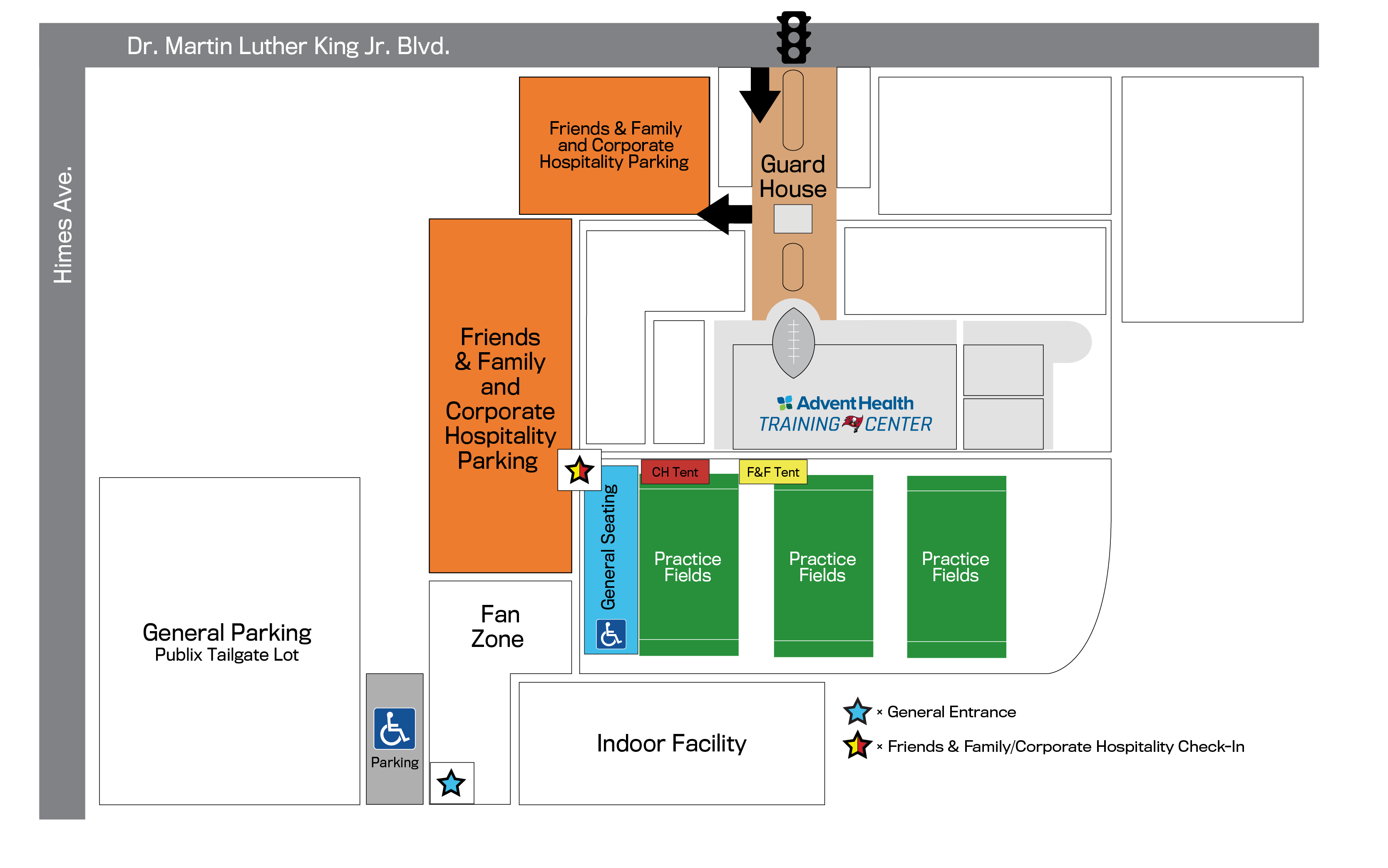 - Located at AdventHealth Training Center accessed via Dr. Martin Luther King Jr. Blvd