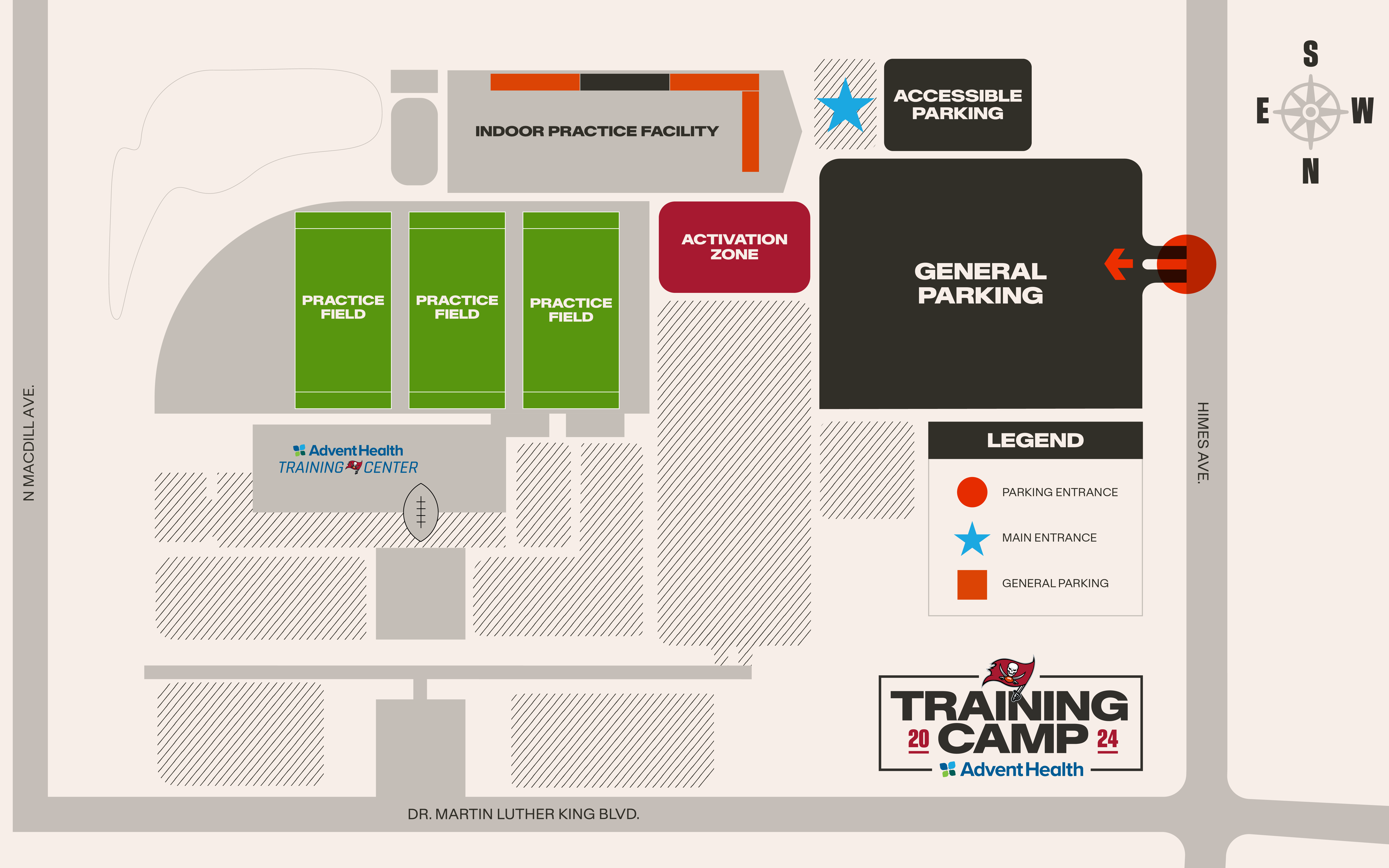- Once parked, head to towards the Indoor Practice Facility for ticketing and security checkpoint.
